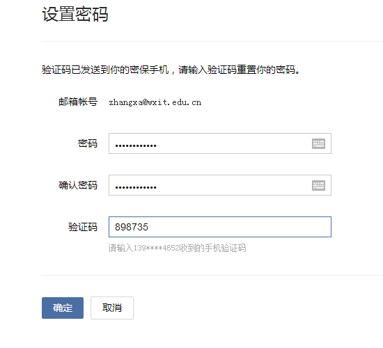 步骤五 设置新密码。根据提示设置新密码,填写密保邮箱邮件中的验证码,点击“确定”,系统提示“重置密码成功”信息。