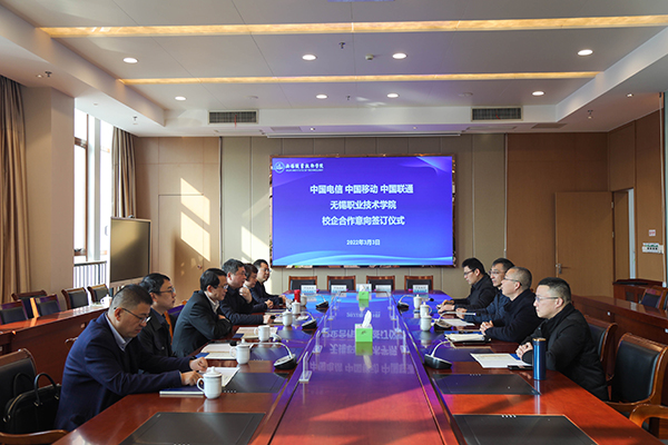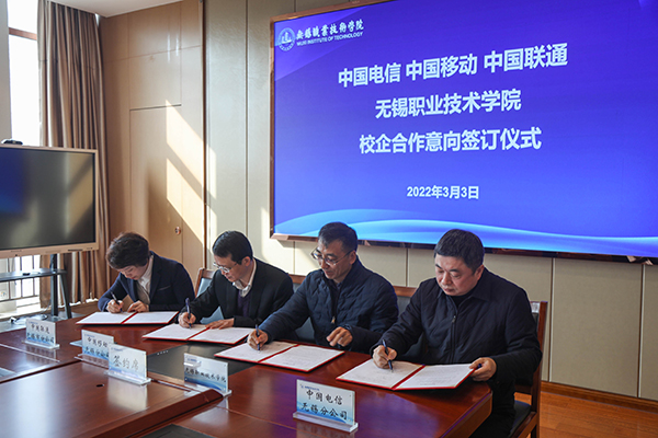 3月3日上午,我校与中国电信、中国移动、中国联通在综合楼F201会议室举行新一轮校企合作签约仪式。我校校长龚方红、副校长强伟纲、三大运营商无锡分公司副总经理,及我校信息化中心相关负责人参加签约仪式,活动由强伟纲主持。