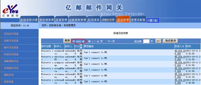 ?xml:namespace>10月7日、10月11日,连续发生了两起信箱账户被盗事件,有两位教师的信箱账户被盗用。信箱账户盗取者利用该邮箱大量地发送垃圾邮件,如下图。