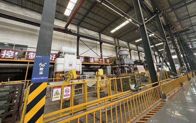 据王强介绍,“过去一个班8小时,三班倒。不同人员的监测误差会直接影响到窑炉烧结的质量。现在,我们通过5G+红外测温实时监测,并将数据实时反馈至控制中心,控制中心会对标我们标准的烧结工艺,自动检测温度,调整气风比例,实现精准控温。”